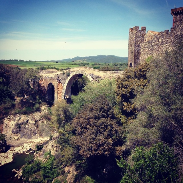 Sulla sponda opposta del pianoro di Vulci si erge il castello dell’Abbadia (che era un’Abbazia Benedettina -da cui il nome), che sorge nei pressi di Canino, accanto ad un suggestivo ponte etrusco-romano, detto dell’arcobaleno o del diavolo, che attraversa il fiume Fiora.