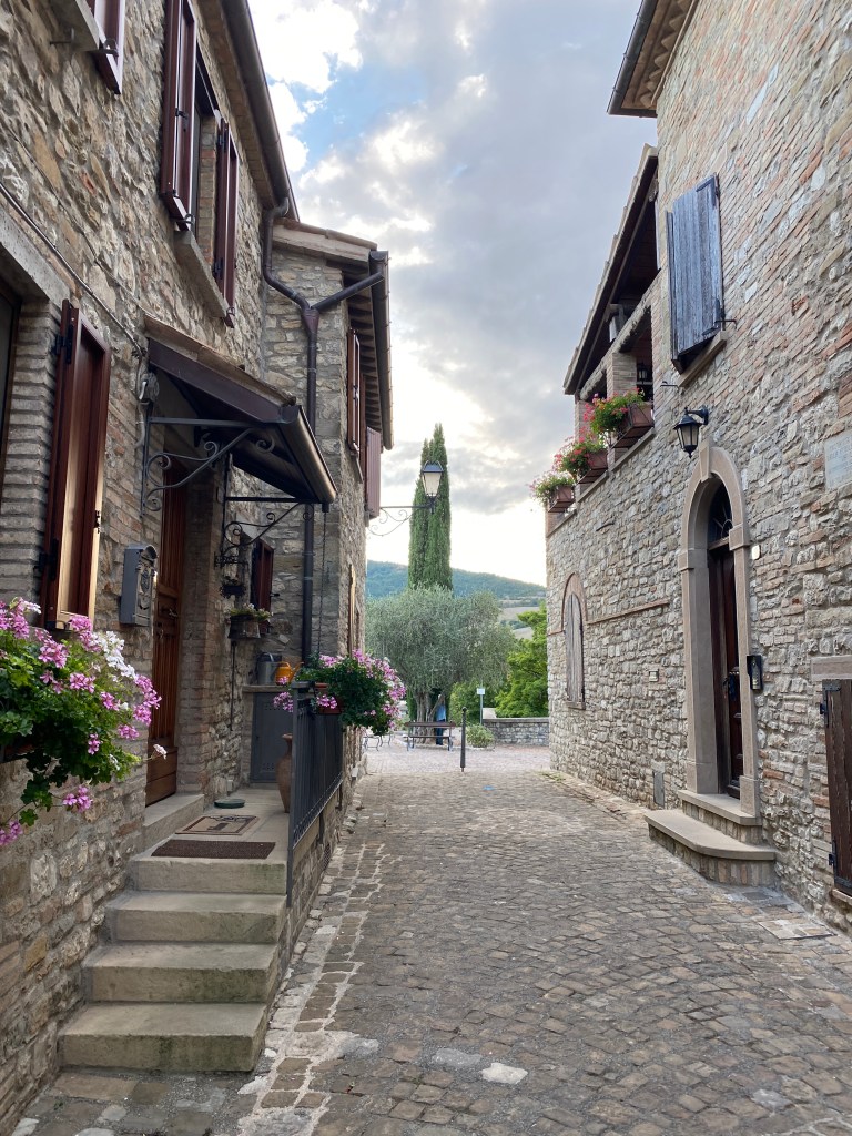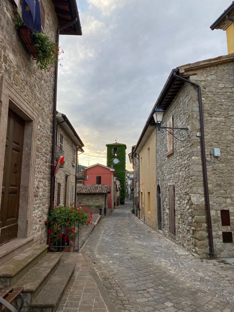 Il centro storico, chiamato “il Castello”, è arroccato su uno sperone che domina il torrente e la bellissima Valle del Mutino. Le strade e le piazze (molto particolare quella principale con anche una fontana) sono lastricate di ciottoli del Mutino; fiori e piante adornano le vie e le case.