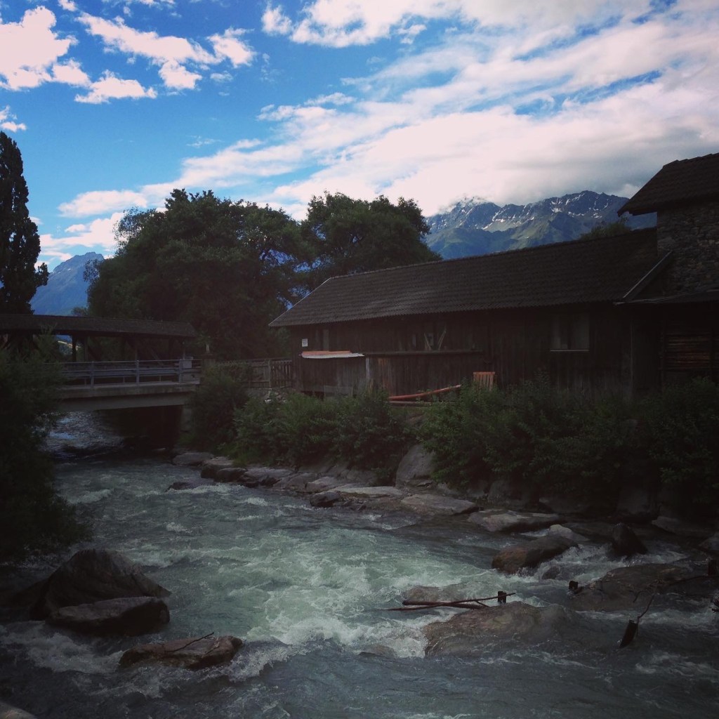 La via sotto i portici era la Via degli Affari ed il mulino che vi si trova (del 1300) ha funzionato fino al 1961.