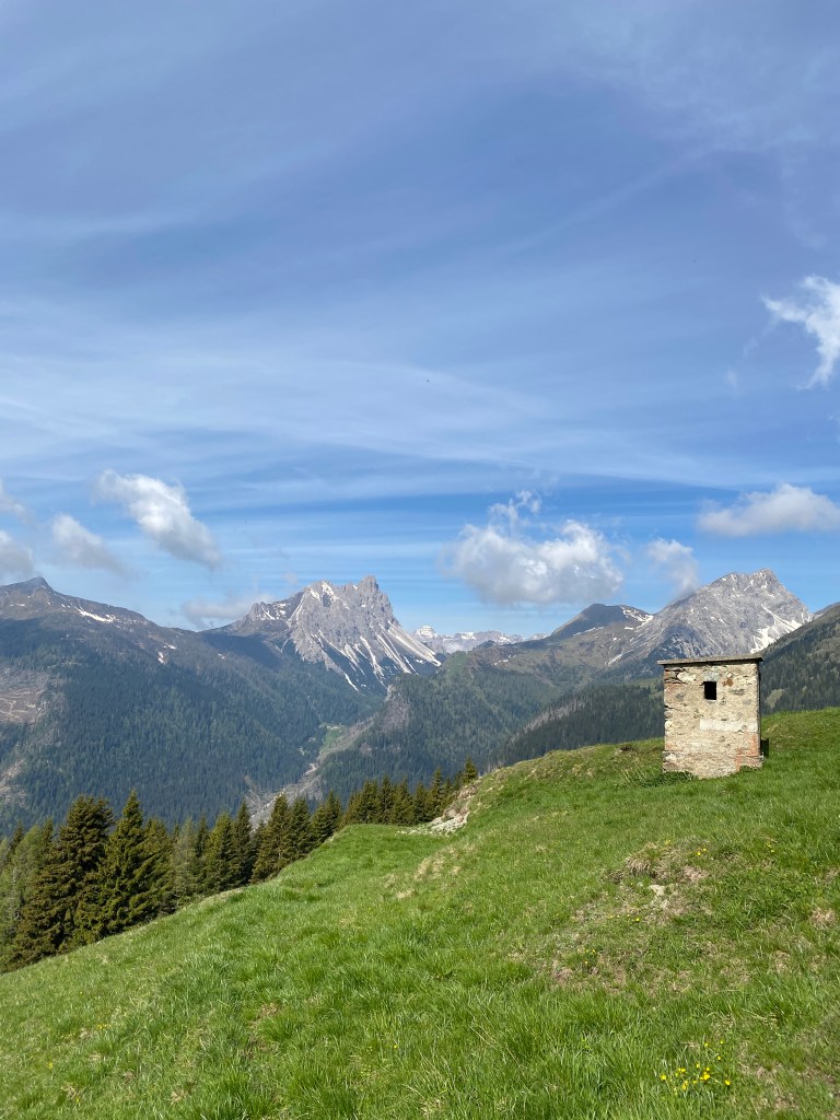 Corsi d’acqua limpida, canti di uccelli e ronzio d’insetti sarebbero gli unici suoni udibili se non ci fossero i lavori nei boschi per tentare di sistemare il paesaggio dopo il passaggio della Tempesta Vaia di ottobre 2018.