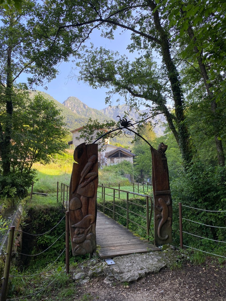 Il percorso si snoda lungo il torrente Rujo nel comune di Cison di Valmarino ed arriva a toccare il Bosco delle Penne Mozze, monumento dedicato agli Alpini che hanno donato il loro coraggio e la loro vita alla Patria nei diversi conflitti che si sono succeduti dalla Campagna di Adua del 1896 in poi, fino al secondo conflitto mondiale.