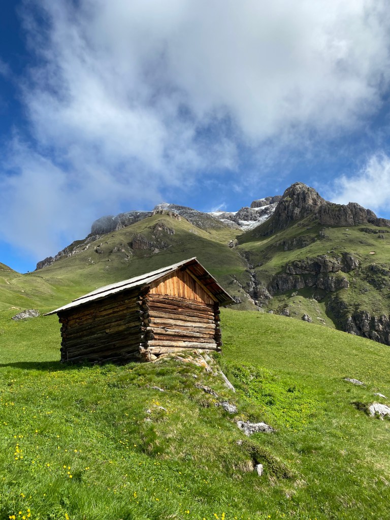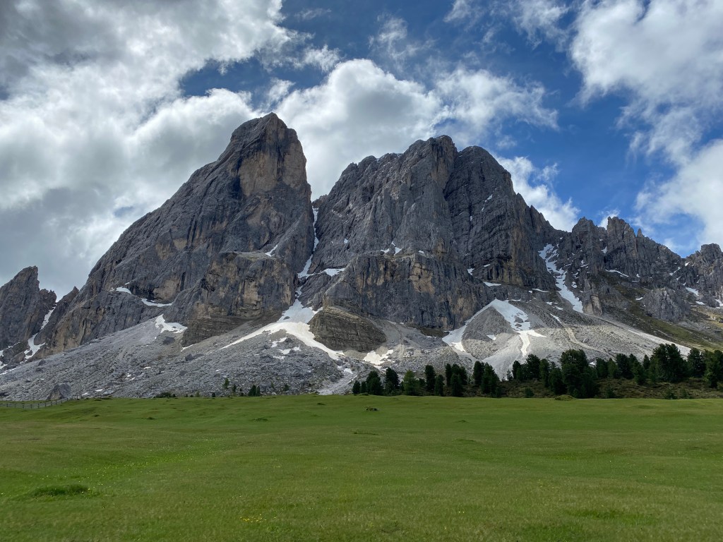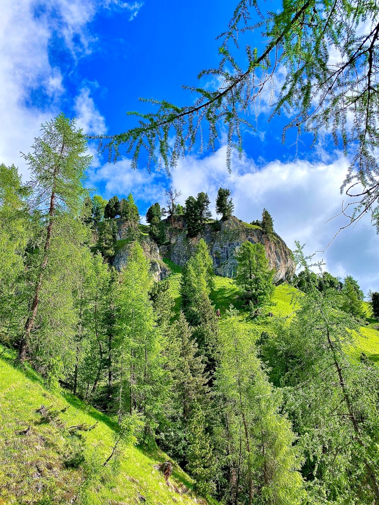 Il giro, da noi cominciato dalla bella Valle dei Mulini di Miscì, prosegue inerpicandosi per un sentiero irto di sassi e radici che ad un certo punto passa in una zona più aperta e permette di ammirare (tempo meteorologico permettendo), per la prima volta dall’inizio del percorso, il Sass de Putia nella sua immensità.