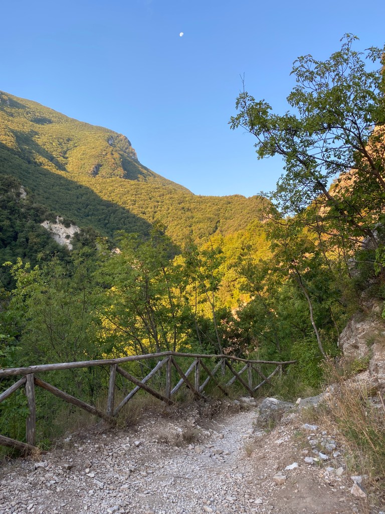 Il sentiero, abbastanza impervio e sassoso, che conduce alle Gole (che purtroppo in nel periodo estivo sono spesso secche) regala comunque un meraviglioso scorcio dell’Abruzzo e dei suoi paesaggi. Nei periodi autunnali e primaverili l’acqua solitamente scorre abbondante e crea dei bellissimi salti d’acqua oltre alla meravigliosa cascata chiamata Lu Cacchèma (il pentolone).