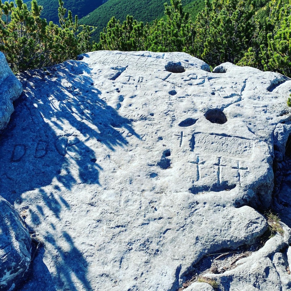 Oggi abbiamo fatto una semplice escursione dal Blockhaus alla Tavola dei Briganti, nel Parco Naturale della Majella, in Abruzzo. La partenza è dal rifugio Bruno Pomilio, a 1930 m s.l.m.