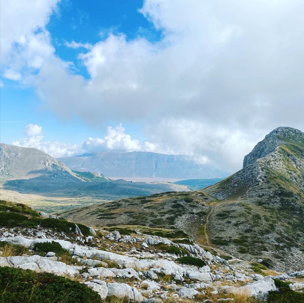 Il panorama dal rifugio Sebastiani è meraviglioso: si vede il Parco Sirente-Velino quasi a 360 gradi e un bel colpo d’occhio sui Piani di Pezza e Campo Felice.