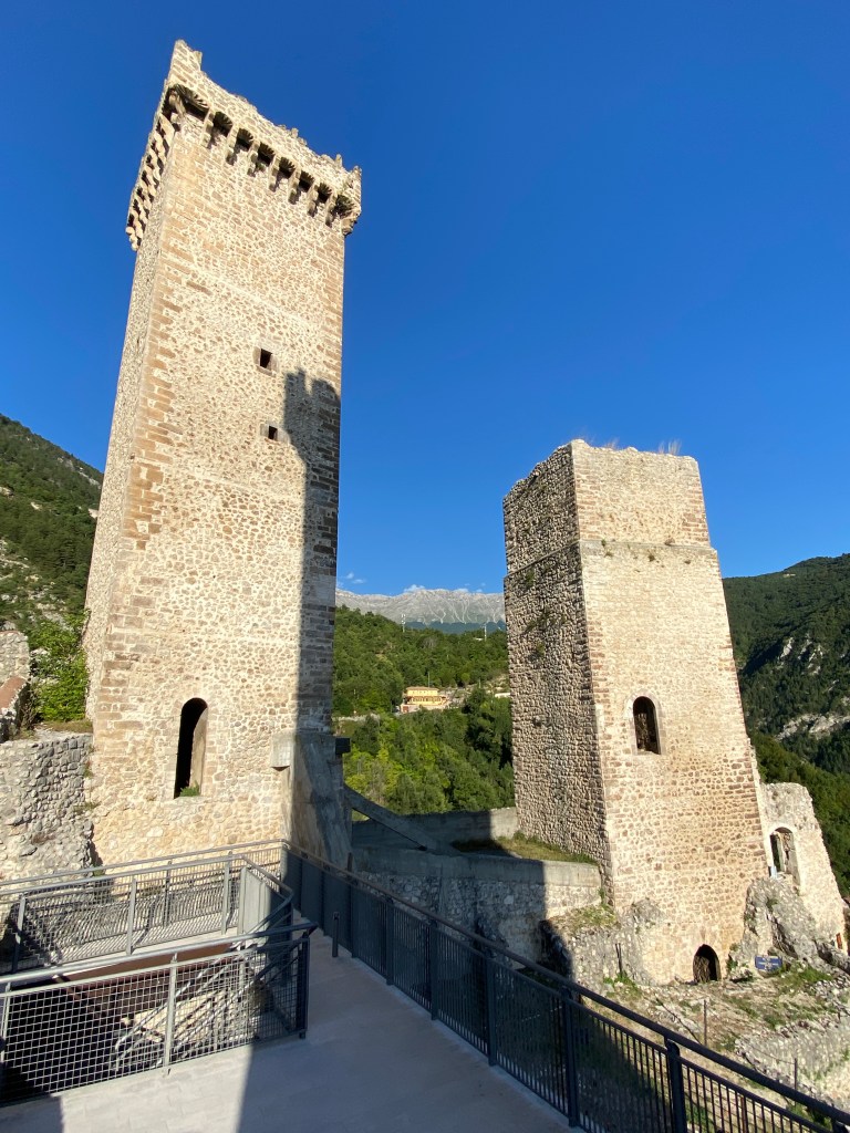 Le torri del castello sono tre: Torre del Re (o Torre del Possesso), Torre dell’Assedio (mozza) e Torre del Fantasma (o Torre di Nord-Est).