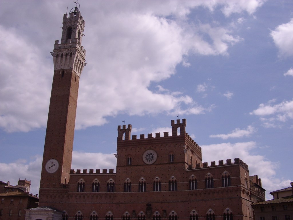 Sulla Piazza si affacciano il Palazzo Pubblico (inaugurato nel 1310) e la Torre del Mangia (alta 88 metri e costruita tra il 1338 ed il 1348). La Piazza stessa è il punto di interruzione delle 17 Contrade di Siena (clicca qui per approfondirle). Ad ogni Palio partecipano dieci delle diciassette Contrade.
