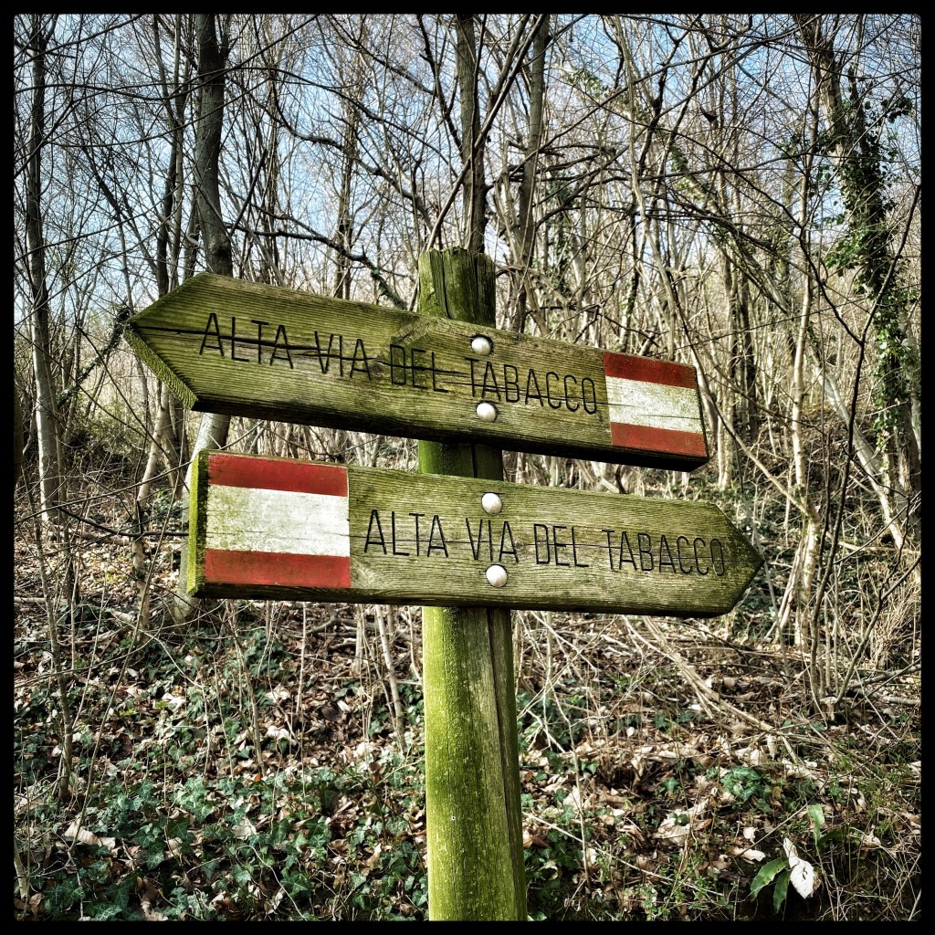 Oggi abbiamo fatto una passeggiata su di un tratto dell’Alta Via del Tabacco (clicca qui per scaricare la cartina; Fonte: www.altaviatabacco.it), da Bassano del Grappa fino all’eremo di San Bovo, in provincia di Vicenza.
