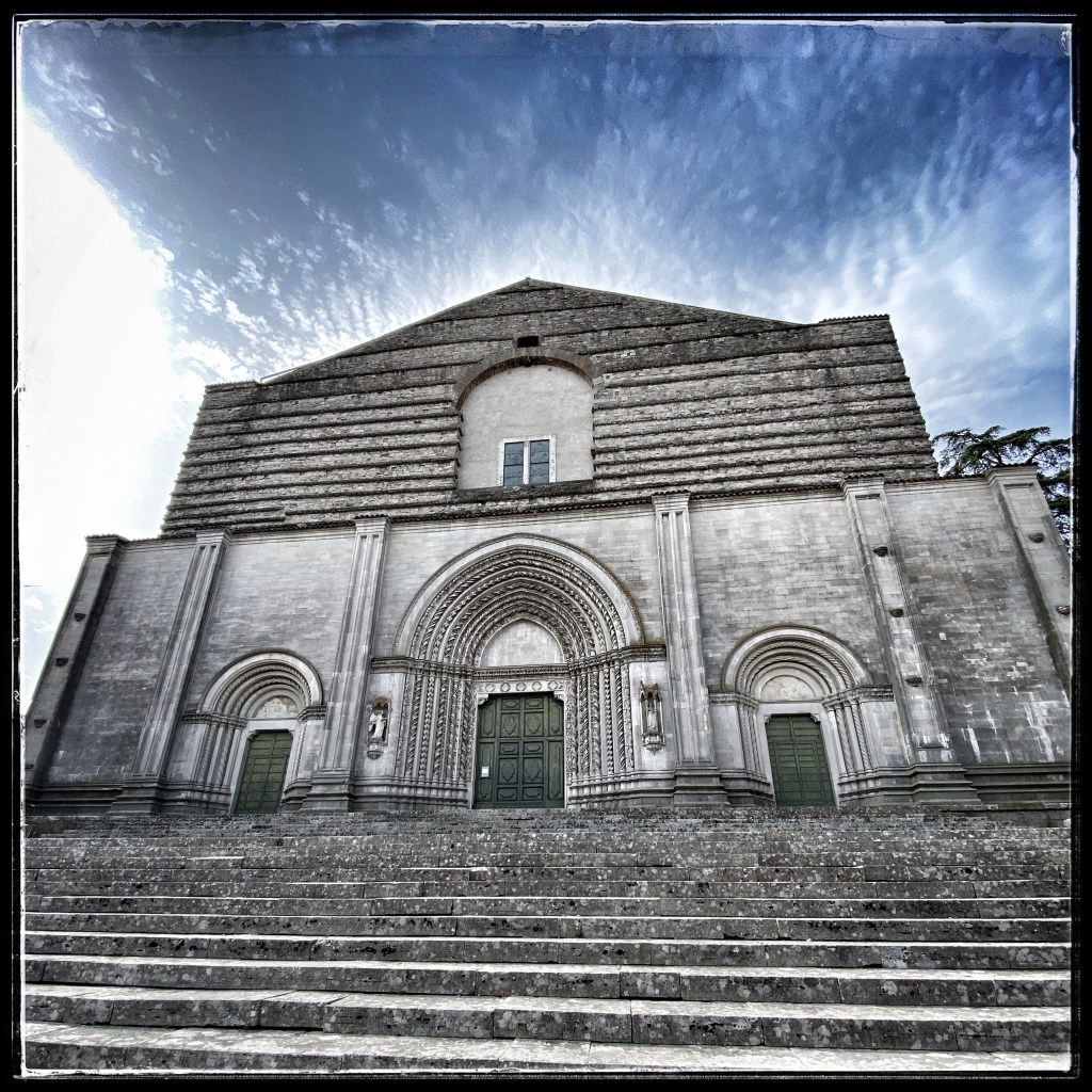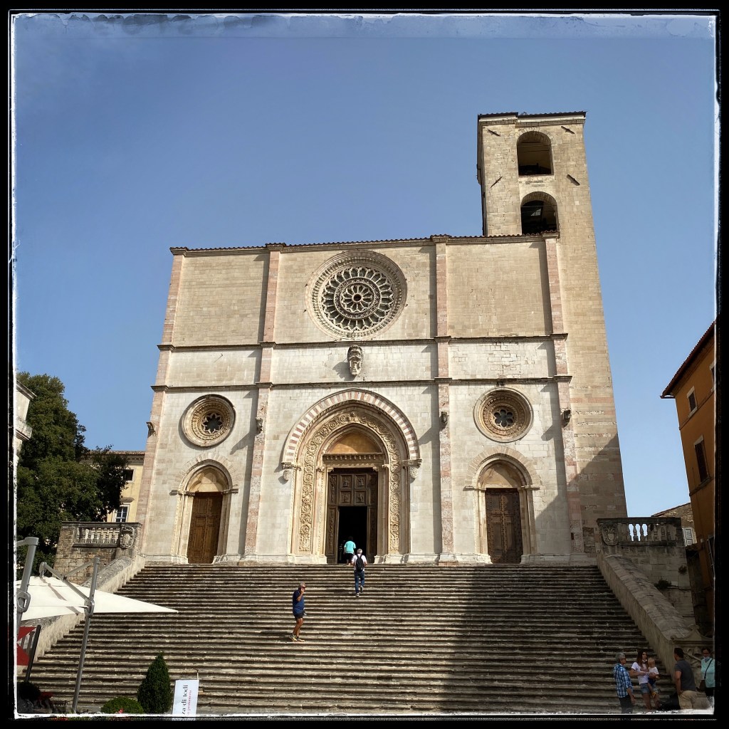 Il tempio di San Fortunato (XIII-XV secolo), in cima a un’imponente scalinata, (esempio di stile gotico umbro) conserva al suo interno le spoglie del poeta religioso Jacopo Benedetti noto come Jacopone da Todi.