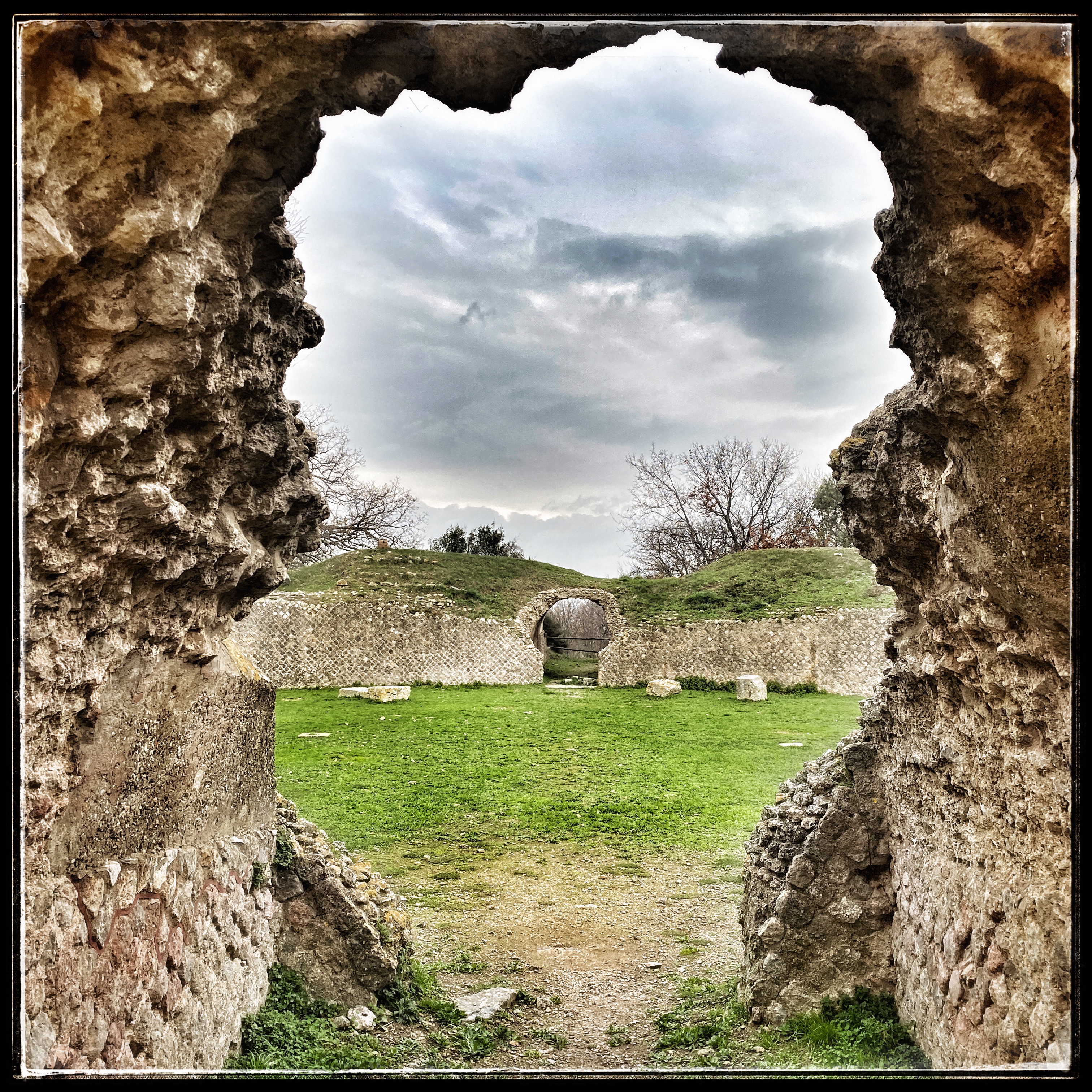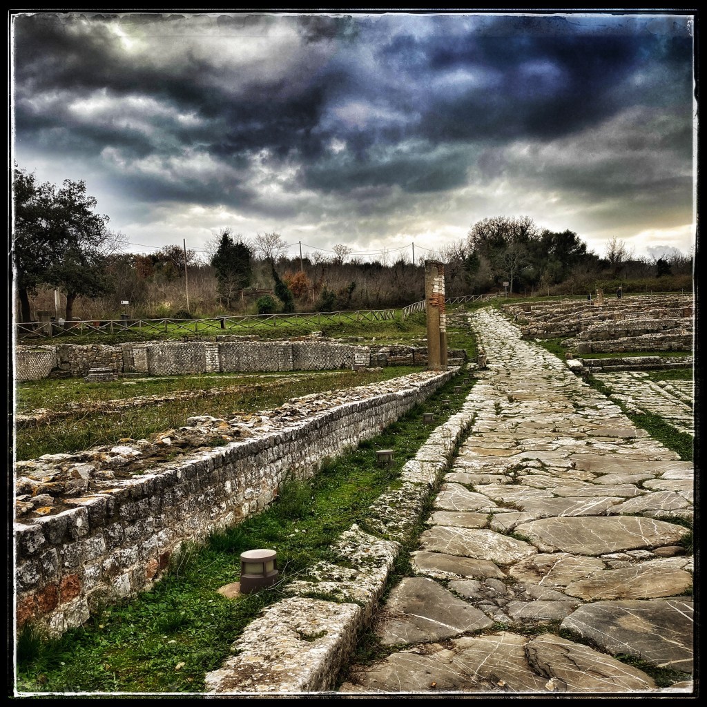 Nella piazza del foro (risalente al I sec. a. C.) è possibile camminare sulle lastre di travertino del pavimento originario.