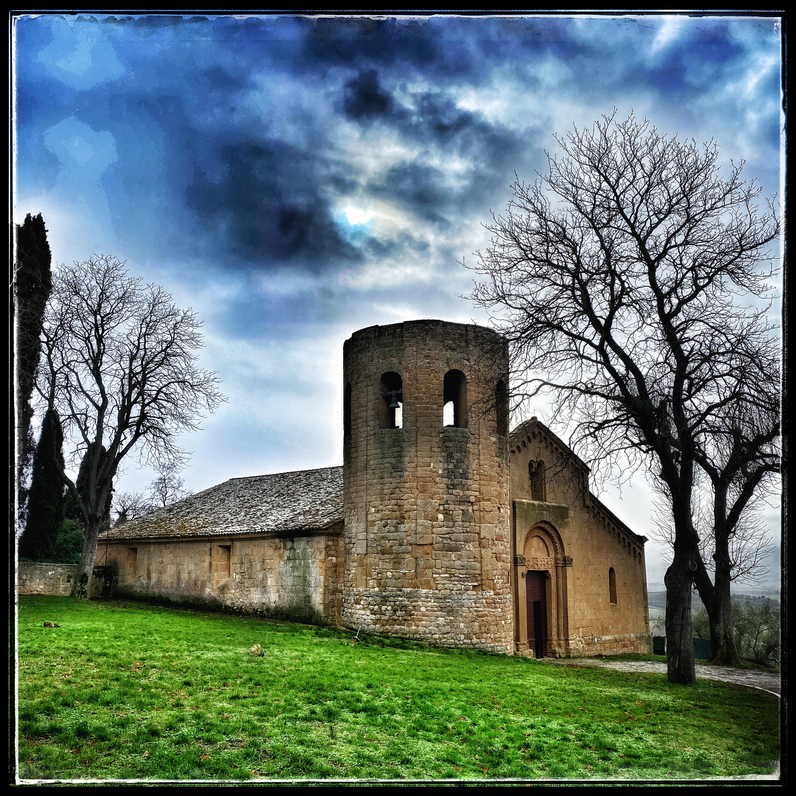 Pieve di Corsignano, alla quale si arriva con una breve passeggiata lungo il fianco della collina, è una chiesa romanica a tre navate. Sulla destra, appena entrati, si può vedere la fonte battesimale originale in cui furono battezzati sia Papa Pio II che suo nipote papa Pio III.