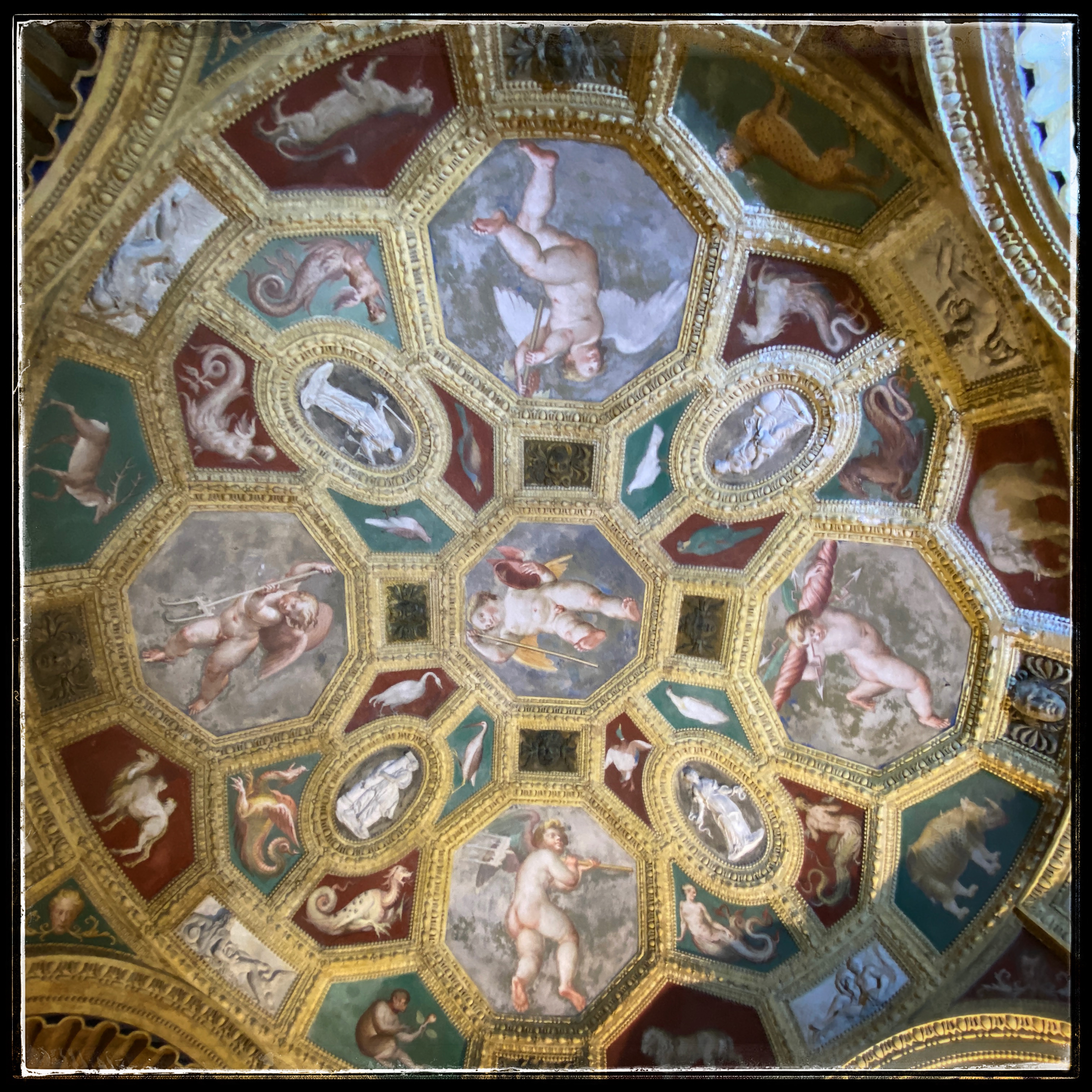 Meravigliosa anche la Galleria degli Antichi, detta “Il Corridor grande” di 96 metri, affrescata e con soffitto ligneo costruita come contenitore della collezione archeologica di Vespasiano.