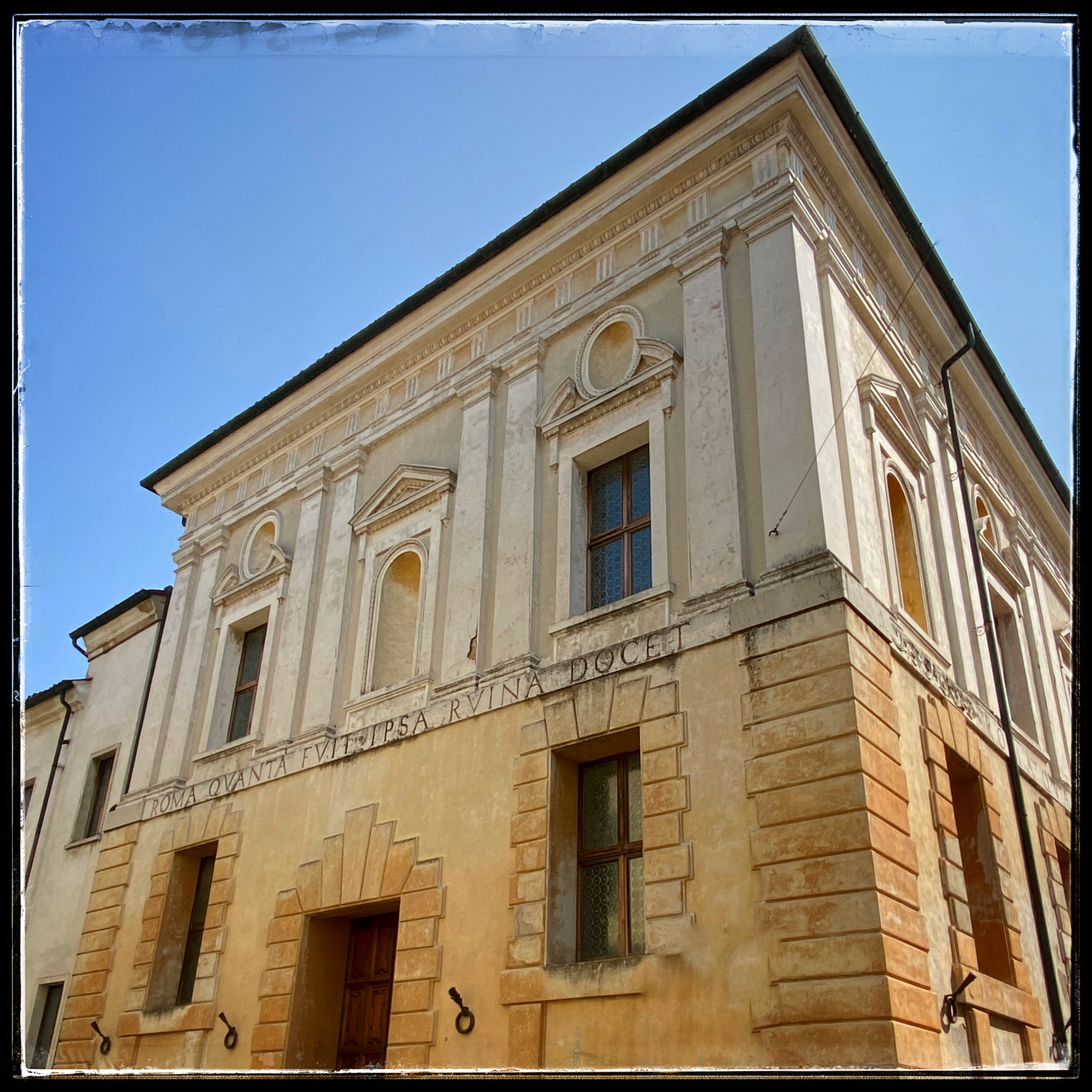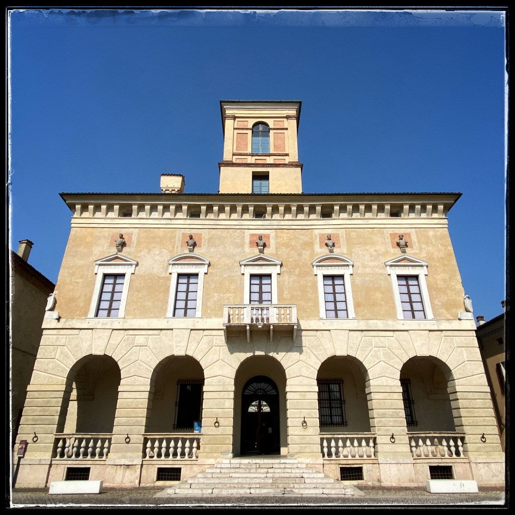Sabbioneta è conosciuta per essere un esperimento architettonico di “città ideale”, costruita seguendo i canoni rinascimentali, simboleggiati dalle proporzioni e dall’armonia dell’uomo vitruviano leonardesco.