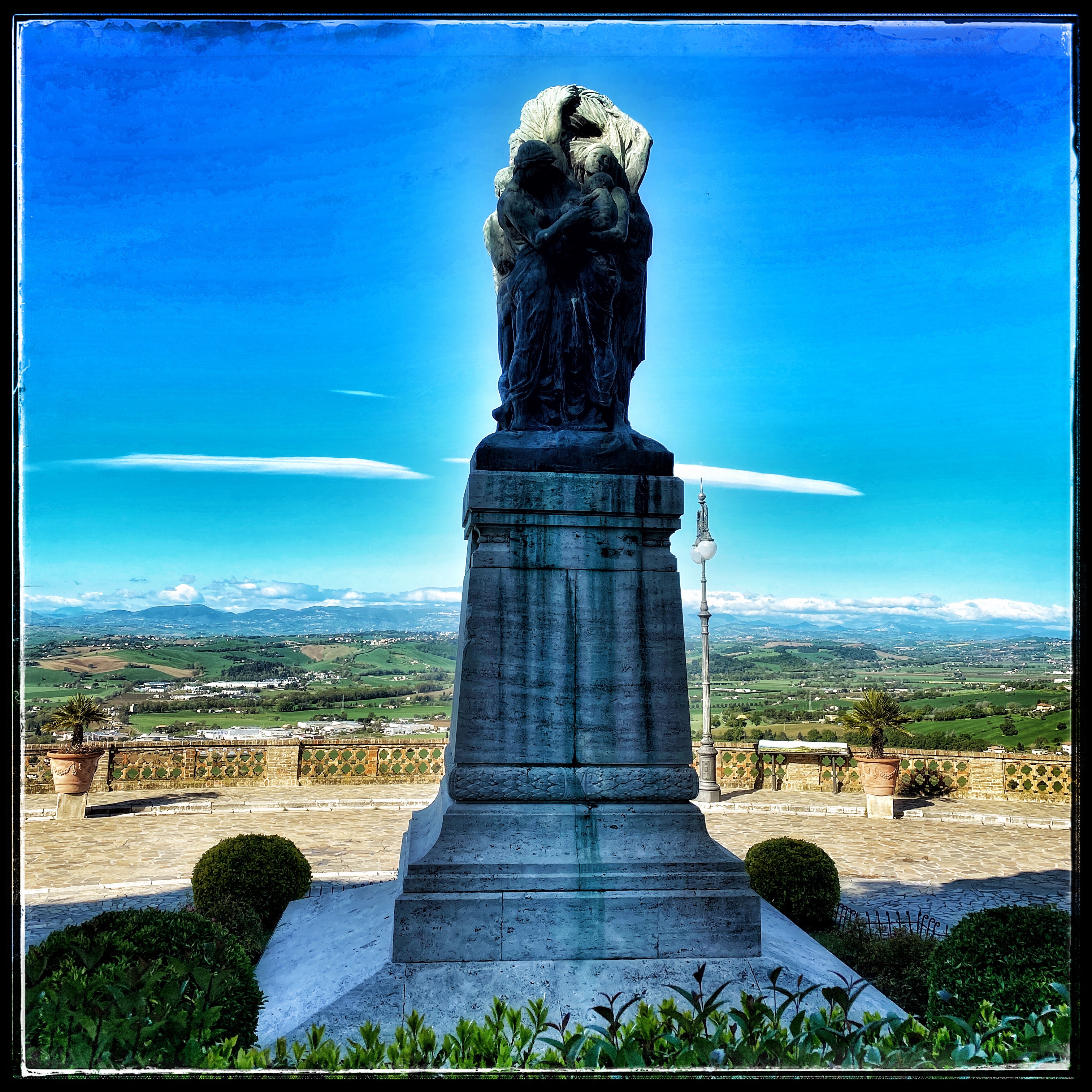 Meravigliosi anche i giardini di Piazza Nuova, da dove si gode di un bellissimo panorama a 270° che permette di spaziare lo sguardo fino ai Monti Sibillini e al Gran Sasso.