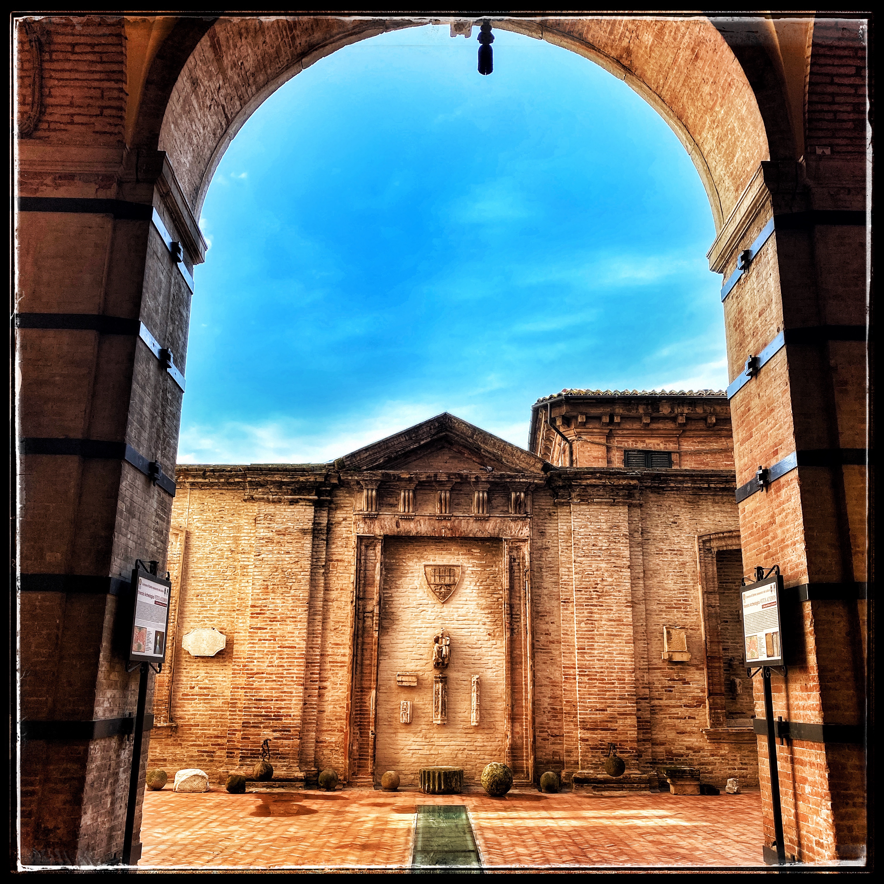 La città di Osimo, Auximum romana, si trova nelle Marche, in provincia di Ancona. È famosa per il Santuario di San Giuseppe da Copertino, (protettore degli studenti perché, nonostante la salute cagionevole e la povertà, riuscì a prendere i voti e ad arrivare al sacerdozio) e per le 12 statue acefale, collocate nell’atrio del palazzo Municipale, che hanno dato agli osimani il nomignolo di “senza testa”.