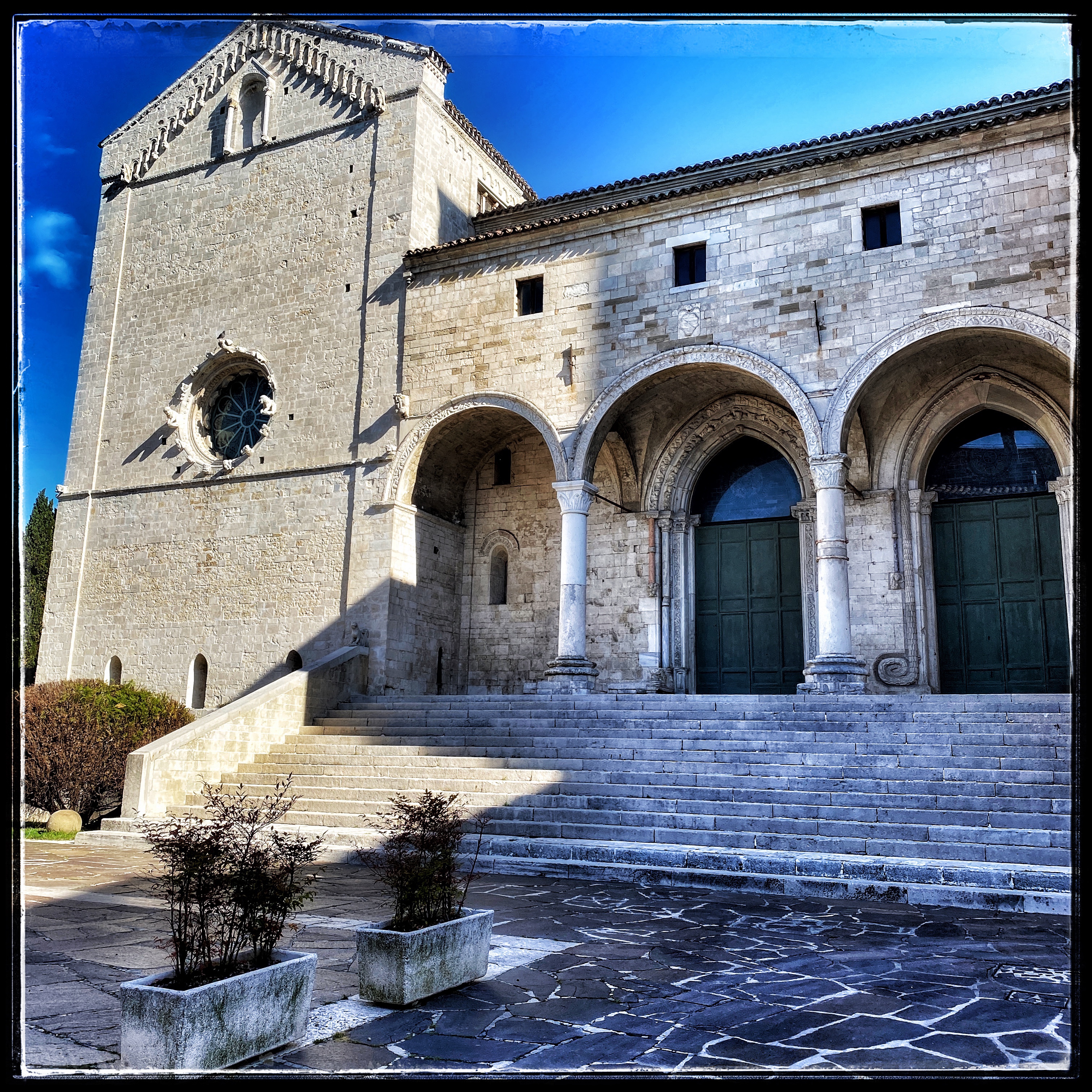 Continuando il giro della città, merita sicuramente una visita il Duomo romanico dedicato a San Leopardo, il cui sarcofago è conservato nella suggestiva cripta sottostante. L’entrata alla chiesa è dal chiostro.