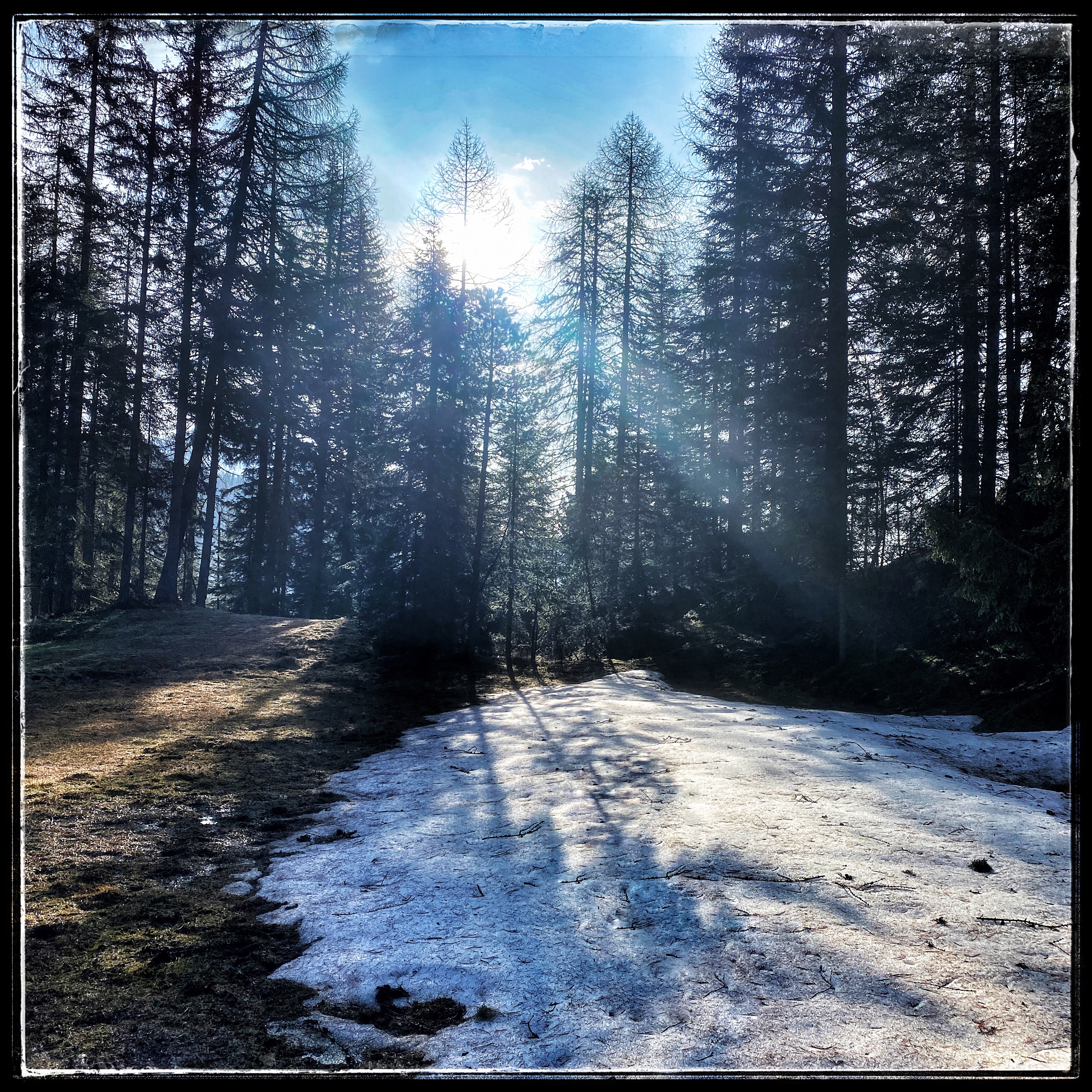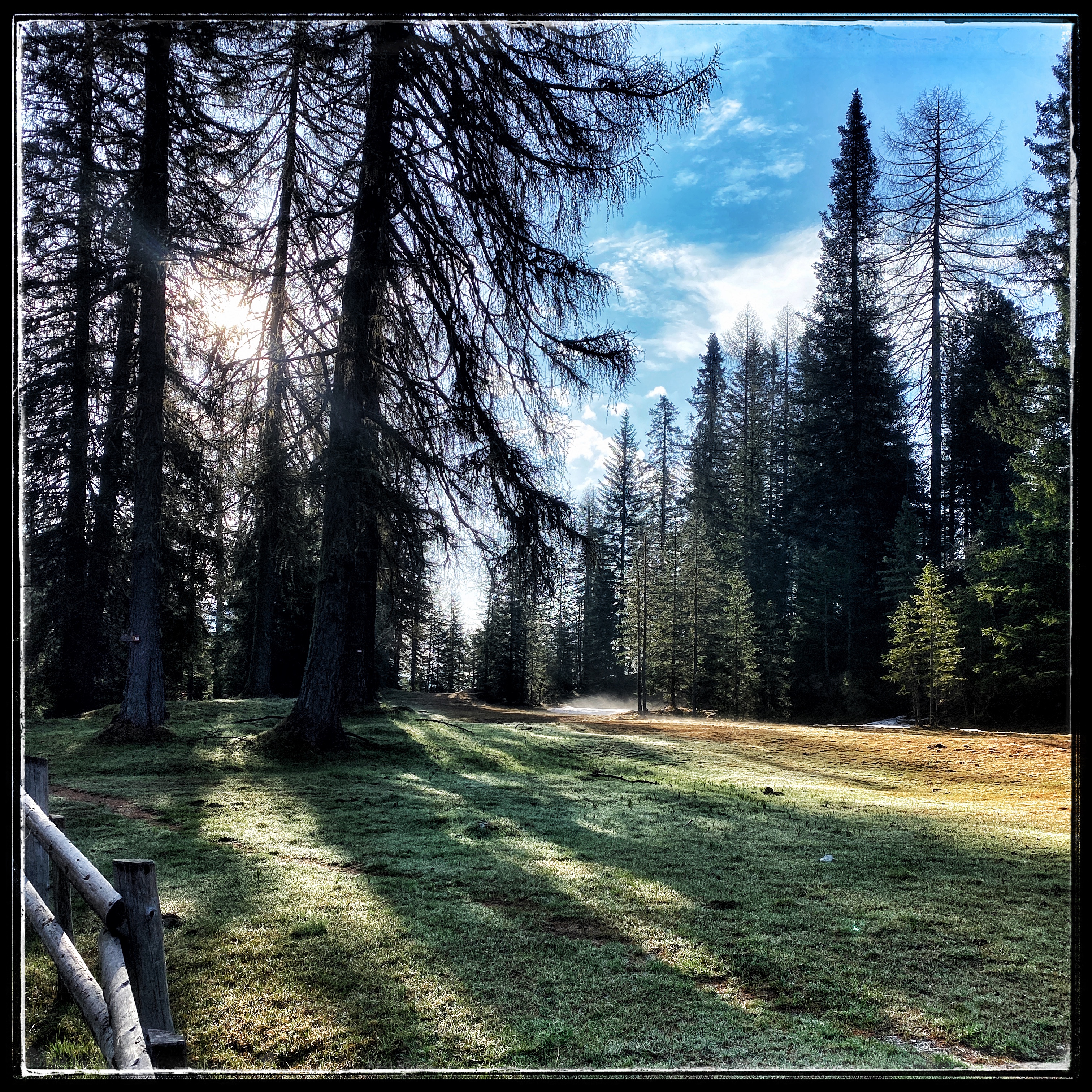 Il tratto iniziale parte in un bosco con una stradina in leggerissima discesa, meravigliose vedute sulle vette del Cristallo-Popena e, in lontananza, su Musurina e le Tre Cime di Lavaredo.
