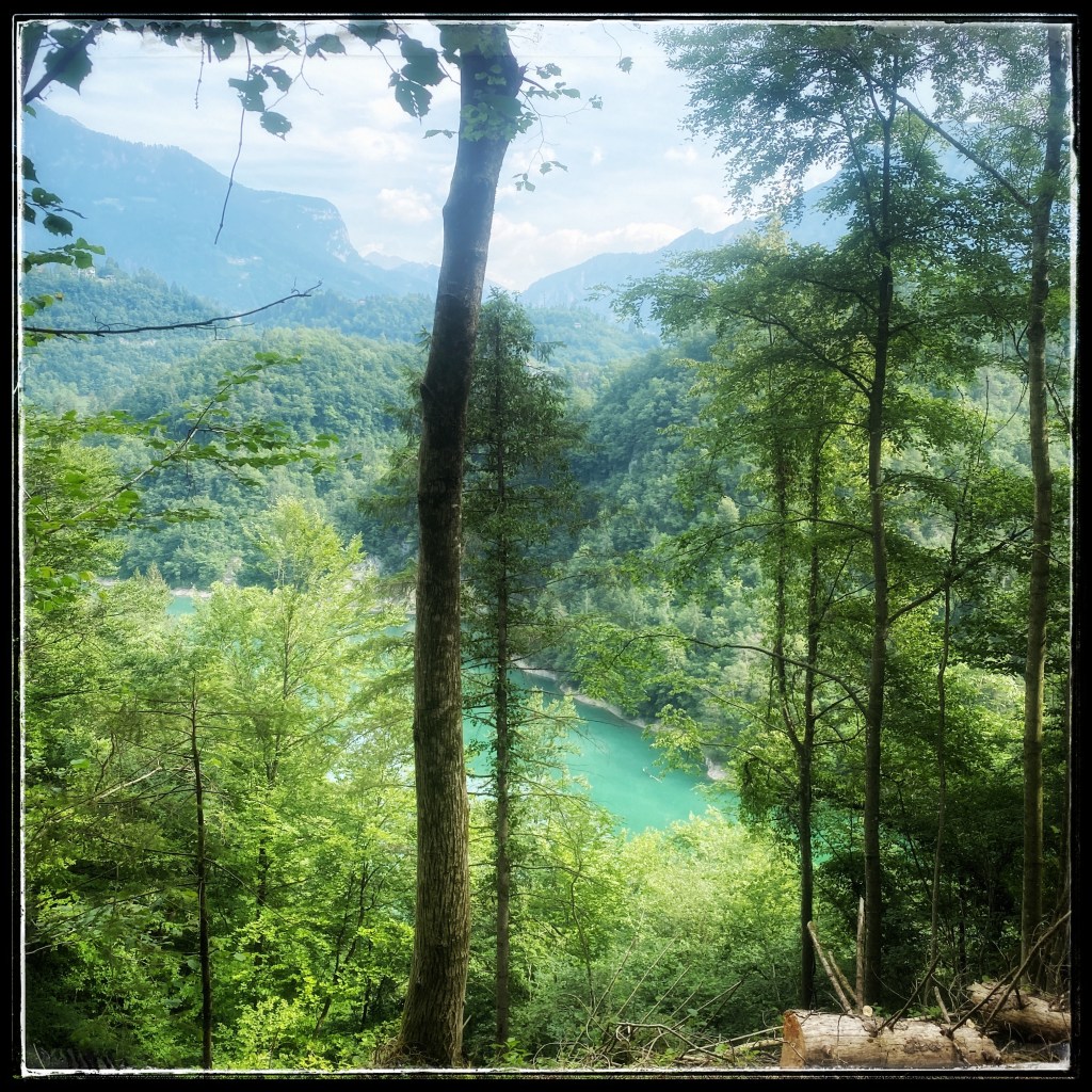 Passata la diga si percorre un tratto della strada forestale e si sale fino in località Prese; uno spiraglio tra la vegetazione permette una vista panoramica degli altopiani Lamonese e Sovramontino, sovrastati dal monte Coppolo e dalle Vette Feltrine.