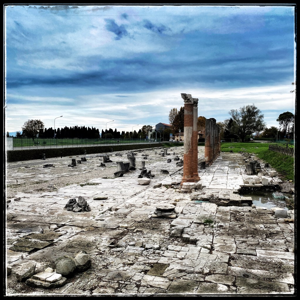 Una suggestiva passeggiata archeologica, detta “Via Sacra” e realizzata negli anni trenta del novecento, si trova tra l’area della basilica e i resti del porto fluviale e ricalca l’antico tracciato del fiume. Sono visibili sul lato occidentale i resti della banchina, i magazzini, gli anelli di ormeggio e i punti di approdo delle imbarcazioni che al tempo arrivavano da tutto il Mediterraneo.