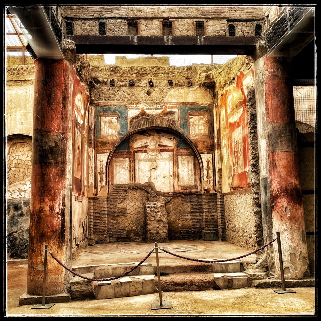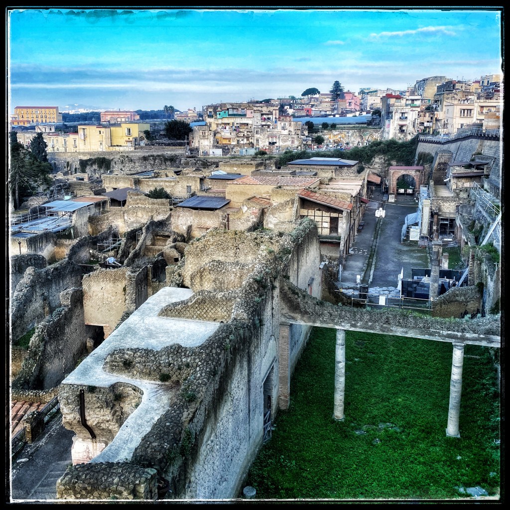 L’antica Hercolaneum è oggi a circa 30 metri di profondità rispetto all’abitato moderno. L’eruzione del Vesuvio nel 79 d.C. l’ha sepolta sotto uno strato di 23 metri come Pompei, fino a quando gli scavi condotti dai Borbone non l’hanno riportata alla luce.