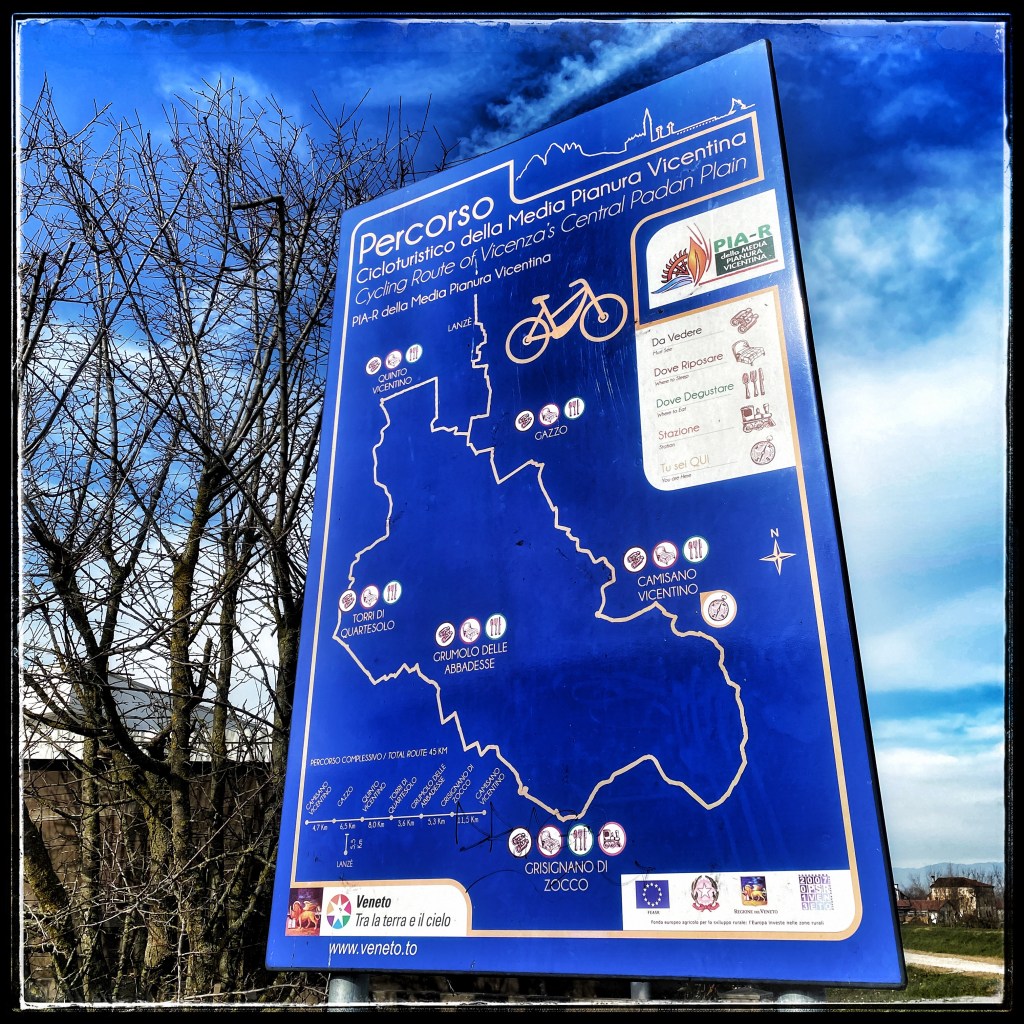 L’anello ciclo-pedonale di 45 km, segnalato da apposita cartellonistica si innesta, nel comune di Grisignano di Zocco, sul tracciato della pista ciclabile di interesse regionale Treviso-Ostiglia.